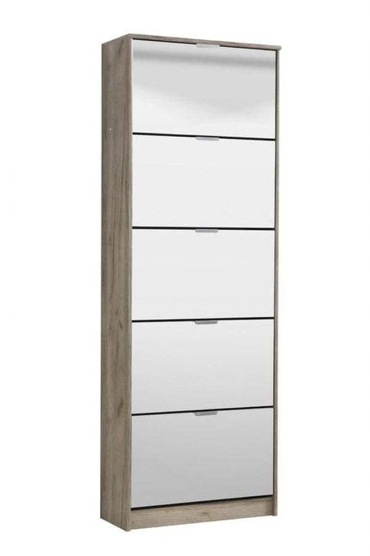 Belos Tall Shoe Cabinet - Mirrored, 5 Drawer