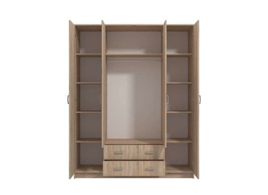 Noreth Oak Wardrobe - 4 Door, 2 Drawer