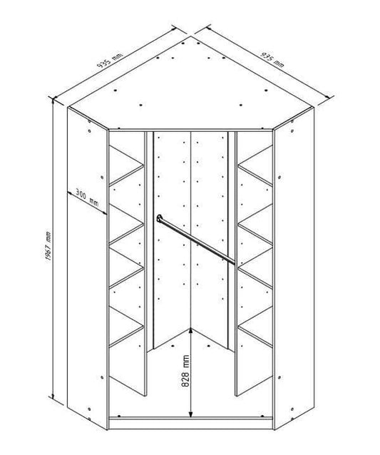 Norix White Mirrored Corner Wardrobe - 2 Door