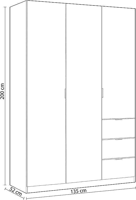 Garix White 135cm Wardrobe - 3 Door, 3 Drawer