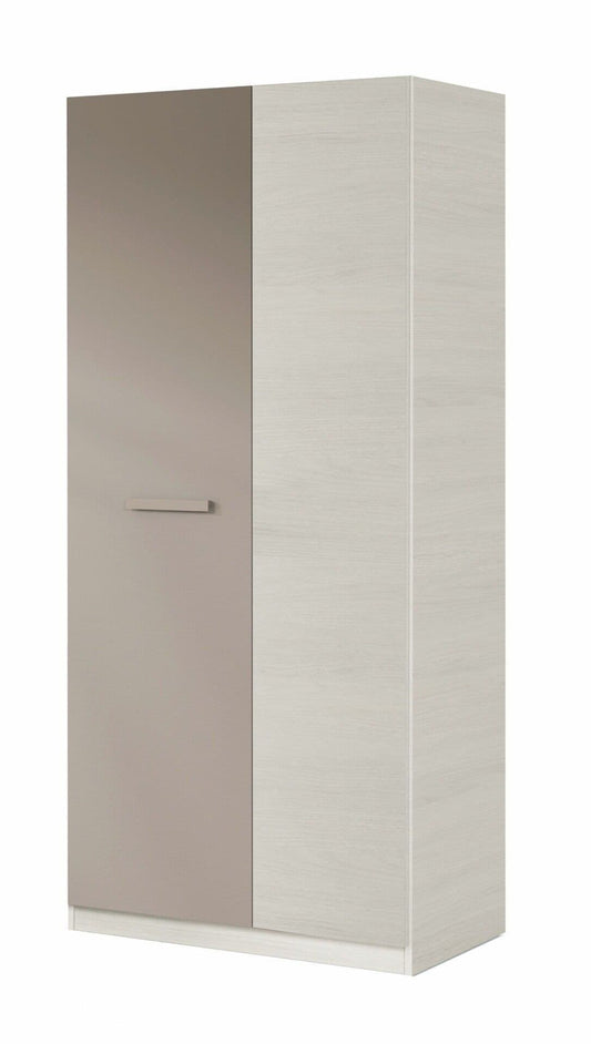 Yelal White & Grey Wardrobe - 2-Door Mirrored Design