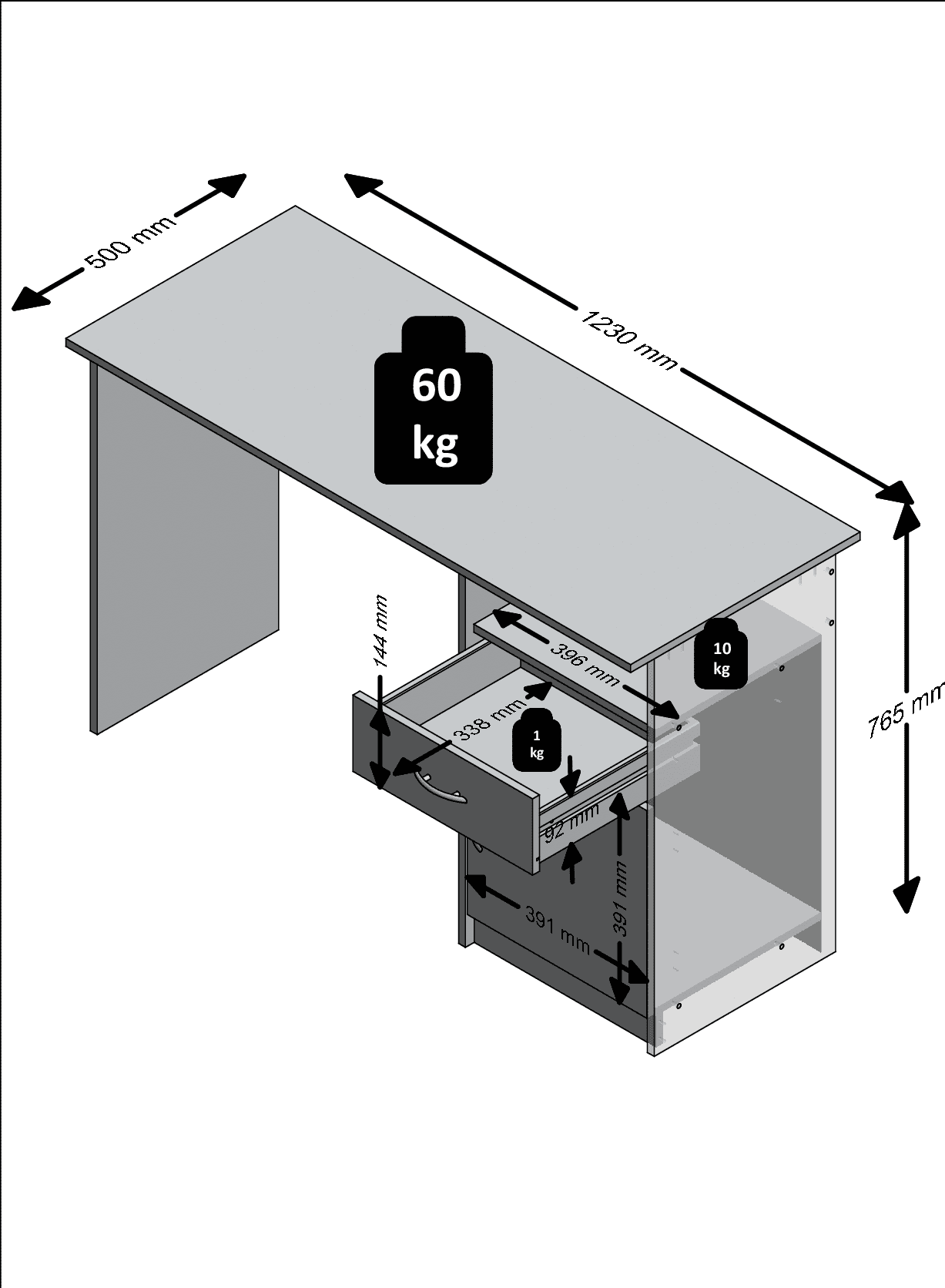 Introducing the Belal Grey and White Desk, a perfect blend of style and functionality. Featuring one drawer, one open storage compartment, and one door, this desk offers ample space to keep your essentials organized. Ideal for any modern workspace, its sleek design enhances productivity and aesthetics.