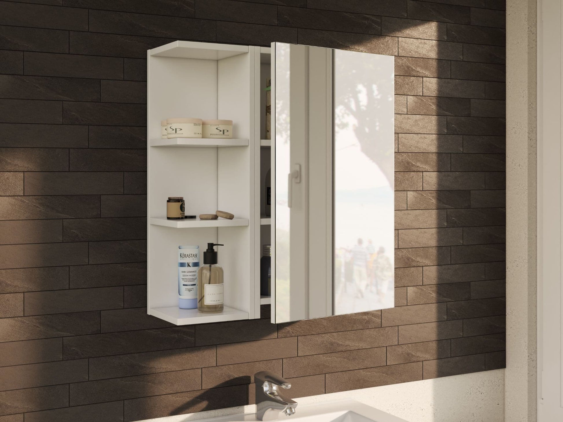 Garum White Bathroom Cabinet - Mirrored, 1 Door